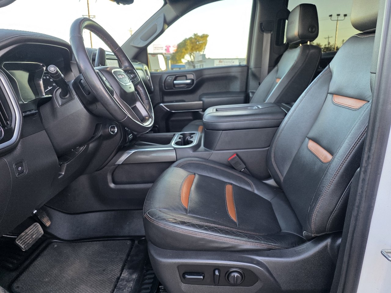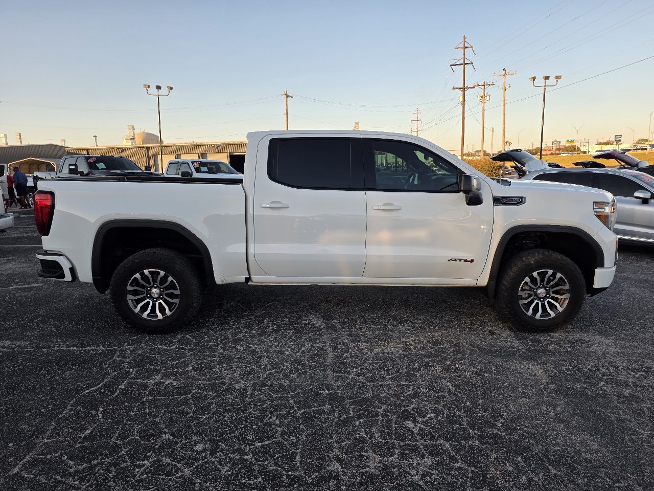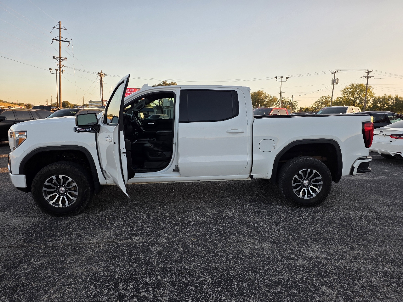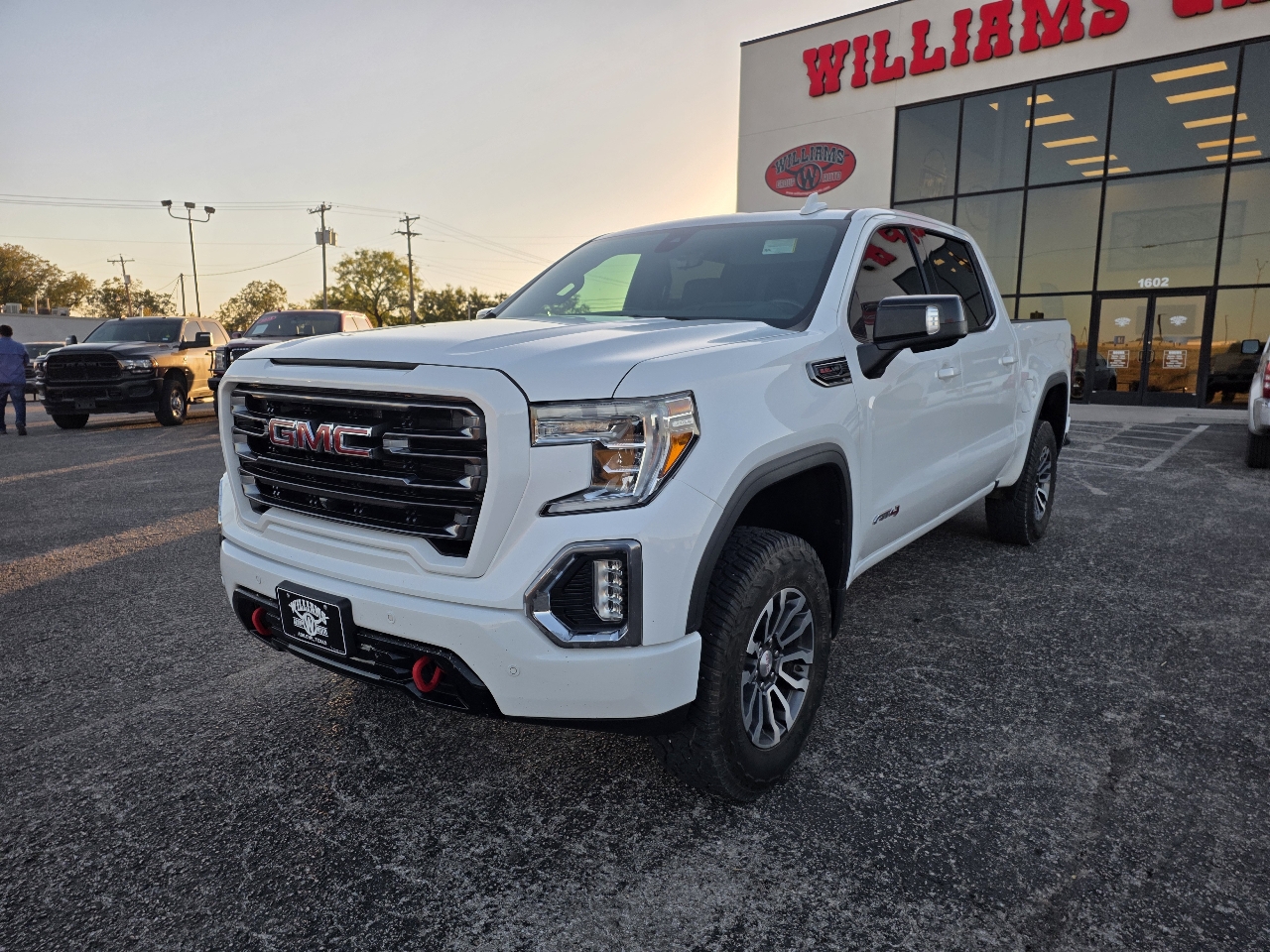 Hop into this White 2021 GMC Sierra 1500 and get ready to hit the road in style and power! With its rugged Trailering Package, towing will be a breeze, thanks to features like Hitch Guidance and In-vehicle Trailering App. Whether you're hauling heavy loads or off-roading, this truck's got you covered with its Off-Road suspension and Auto-locking rear differential. The 4-wheel drive and Two-speed transfer case ensure you're ready for any terrain, while the 3.23 rear axle ratio provides excellent performance. Plus, the sleek body-color bumpers with corner steps and LED lighting all around give this Sierra a modern and premium look. You'll love the convenience of the MultiPro Tailgate with multiple functions and the practicality of the rear seat storage package. With advanced features like Dual-zone automatic climate control, Teen Driver customizable settings, and GMC Connected Access, this truck is as smart as it is tough. So rev up the V8 engine, grip the leather-wrapped heated steering wheel, and get ready for some serious fun on and off the road in this impressive GMC Sierra 1500!